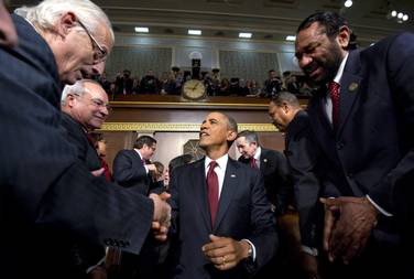 For at least the fourth consecutive year, U.S. Rep. Joe Baca outmaneuvered a host of his Democratic colleagues and worked himself into a coveted center aisle seat at last week’s State of the Union address. Baca, who was already in position several hours before the speech, again nabbed a primo spot and fought through the scrum of lawmakers to greet President Barack Obama on his way to the podium.