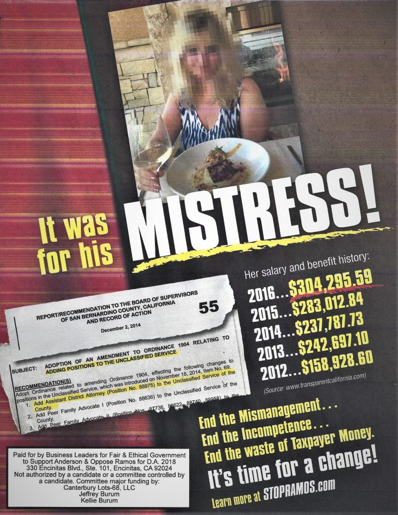 Another day and it’s another political mailer calling out the unethical conduct of San Bernardino County District Attorney Mike Ramos.