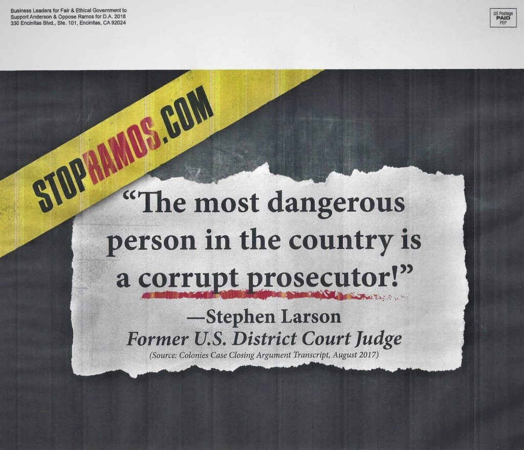 Another day and it’s another political mailer calling out the unethical conduct of San Bernardino County District Attorney Mike Ramos.