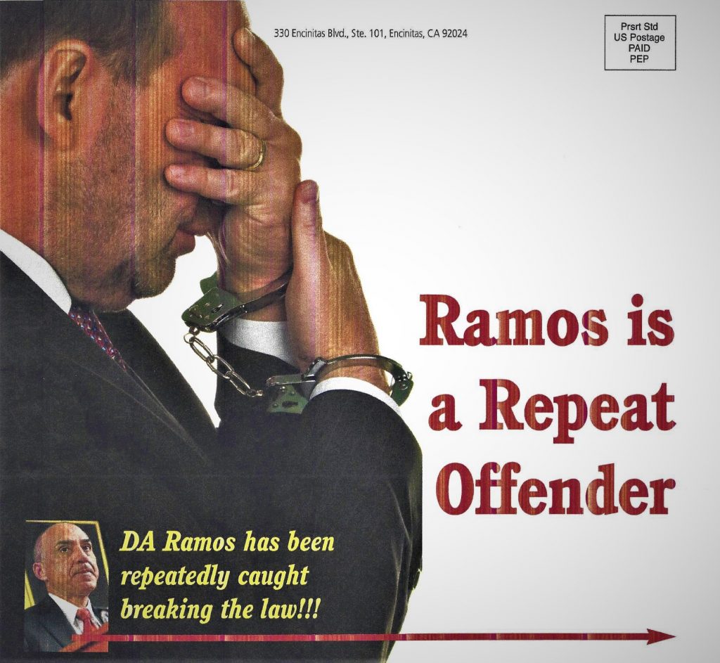 With just nine days remaining until Election day, a new political mailer has landed against four-term incumbent San Bernardino County District Attorney Mike Ramos.